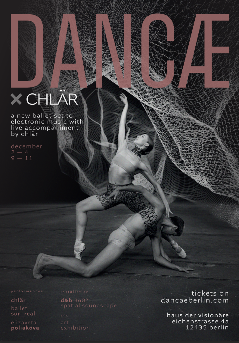 Die Zusammenarbeit zwischen DANCÆ und dem elektronischen Musiker Chlär stellt den Klang in den Mittelpunkt der choreografischen Erfahrung. Anstatt Musik als Begleitung zu verstehen, erforscht die Performance, wie Bewegung aus Klang entstehen kann und wie beide einander in Echtzeit beeinflussen. Während Chlär ein Live-Set spielt, werden die Tänzer*innen und die 360°-Spatial-Sound-Installation von d&b audiotechnik zu Erweiterungen seiner Komposition.